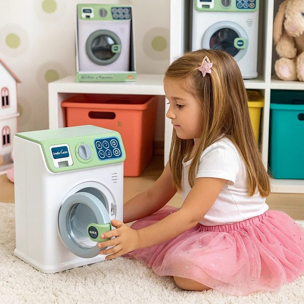 Gerçekçi detayları, dokunmatik kontrol paneli ve efektleriyle evcilik oyunlarını bir üst seviyeye taşıyan çamaşır makinesi oyuncak. Çocuklar, kıyafetleri yerleştirip kapağı kapatarak adım adım “yıkama” rutinini canlandırır; günlük yaşam becerilerini oyunla öğrenir.