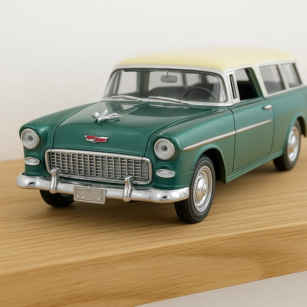 Klasik Amerikan otomobillerinin simgelerinden 1955 Chevy Bel Air Nomad, 1:24 ölçekte yüksek detay ve kaliteli malzeme ile yeniden hayat buluyor. Vitrine, ofis masasına ya da koleksiyon rafına nostaljik ve prestijli bir dokunuş katar.