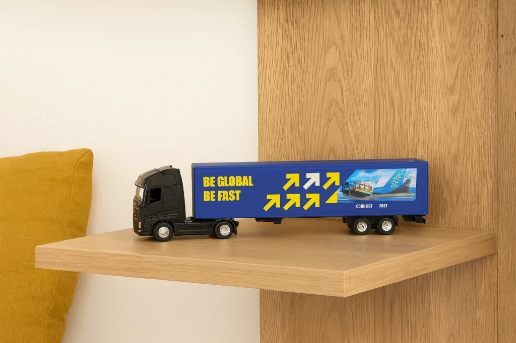 Gerçekçi kabin tasarımı, renkli dorse detayları ve dayanıklı malzeme yapısı sayesinde uzun ömürlü kullanım sunar. İster vitrin koleksiyonlarınızda sergileyin ister çocuklarınızın oyun dünyasına katın — bu model tır her yaşa hitap eden şık bir parçadır.