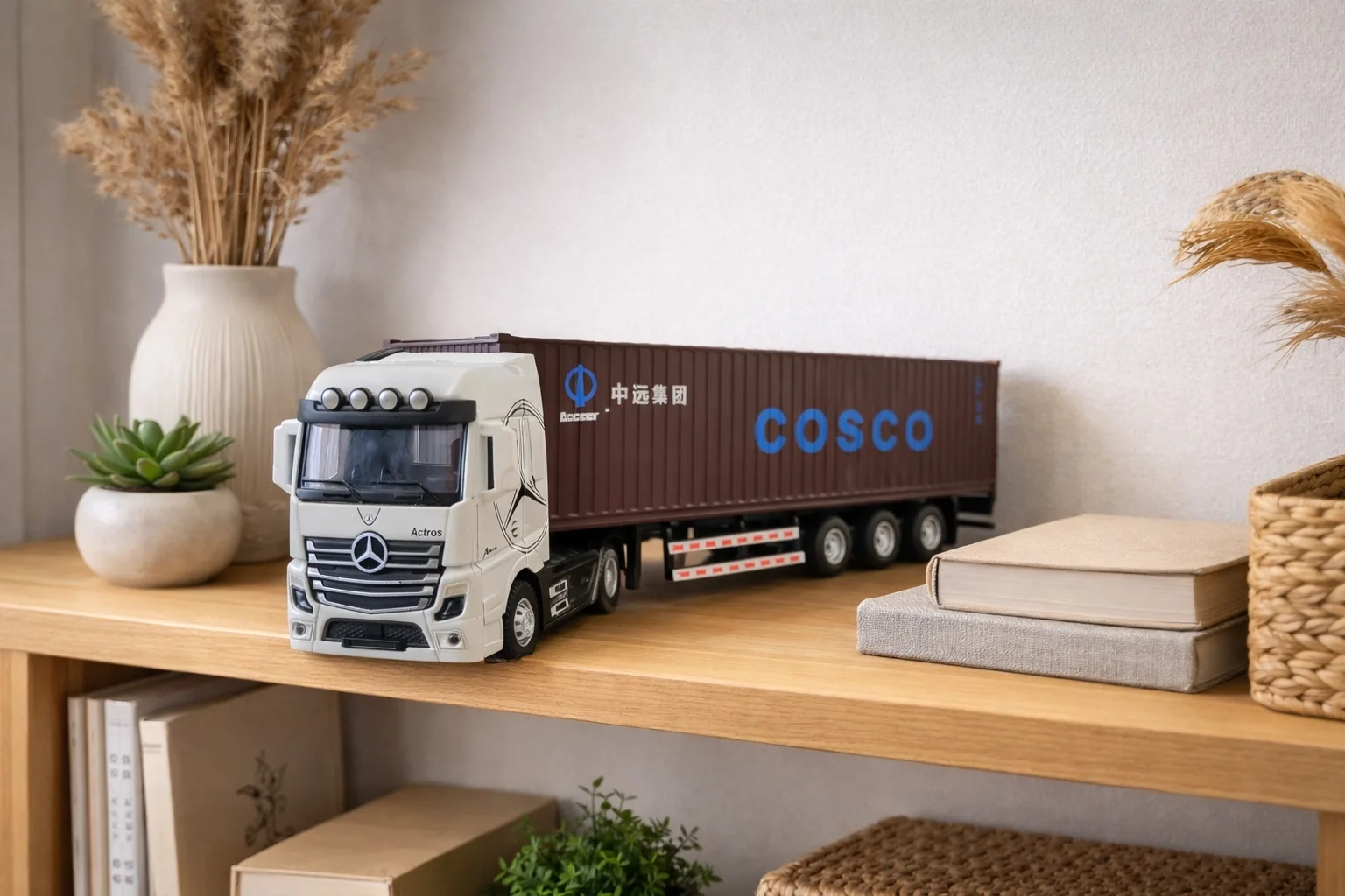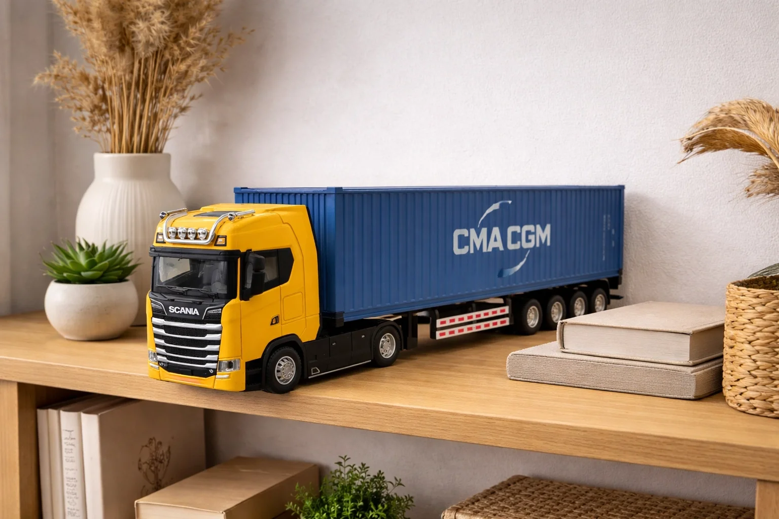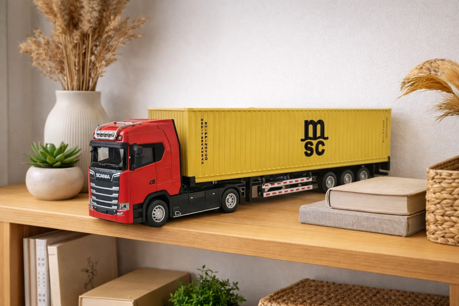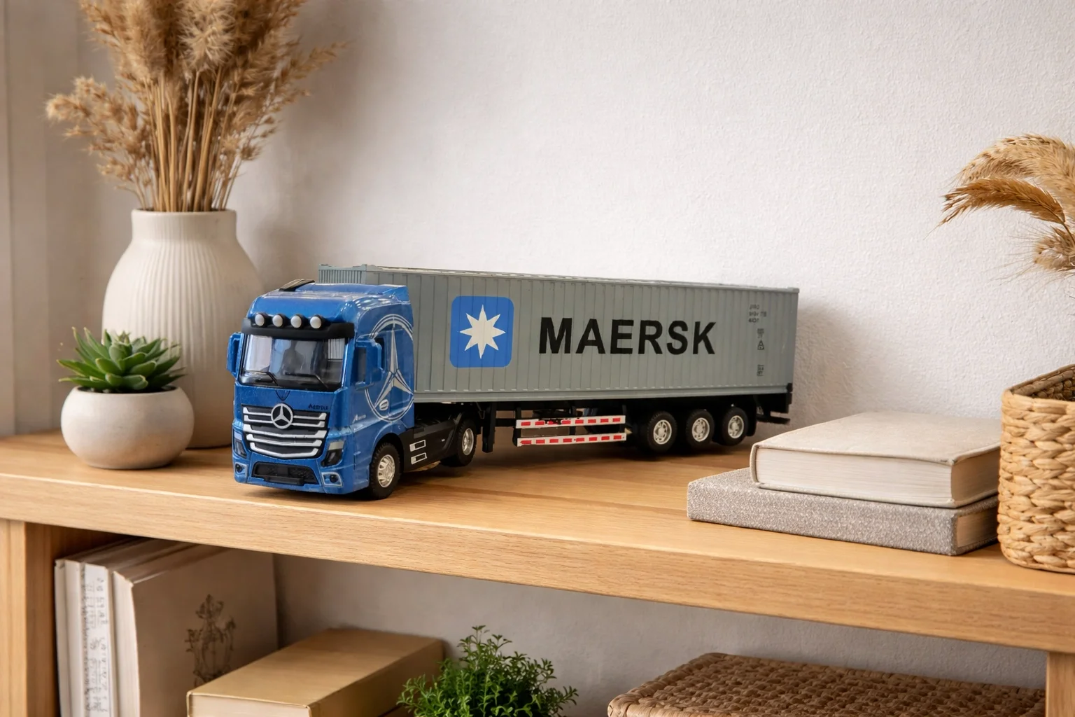 Mercedes ve Scania tasarımından ilham alan bu tır modeli; metal gövdesi, çek-bırak mekanizması ve sesli-ışıklı efektleriyle hem oyun keyfi hem de sergileme amacı için güçlü bir alternatiftir. 31 cm boyutu sayesinde raf üzerinde dikkat çeken bir duruş sunar. Dayanıklı yapısı ile uzun süreli kullanıma uygundur.