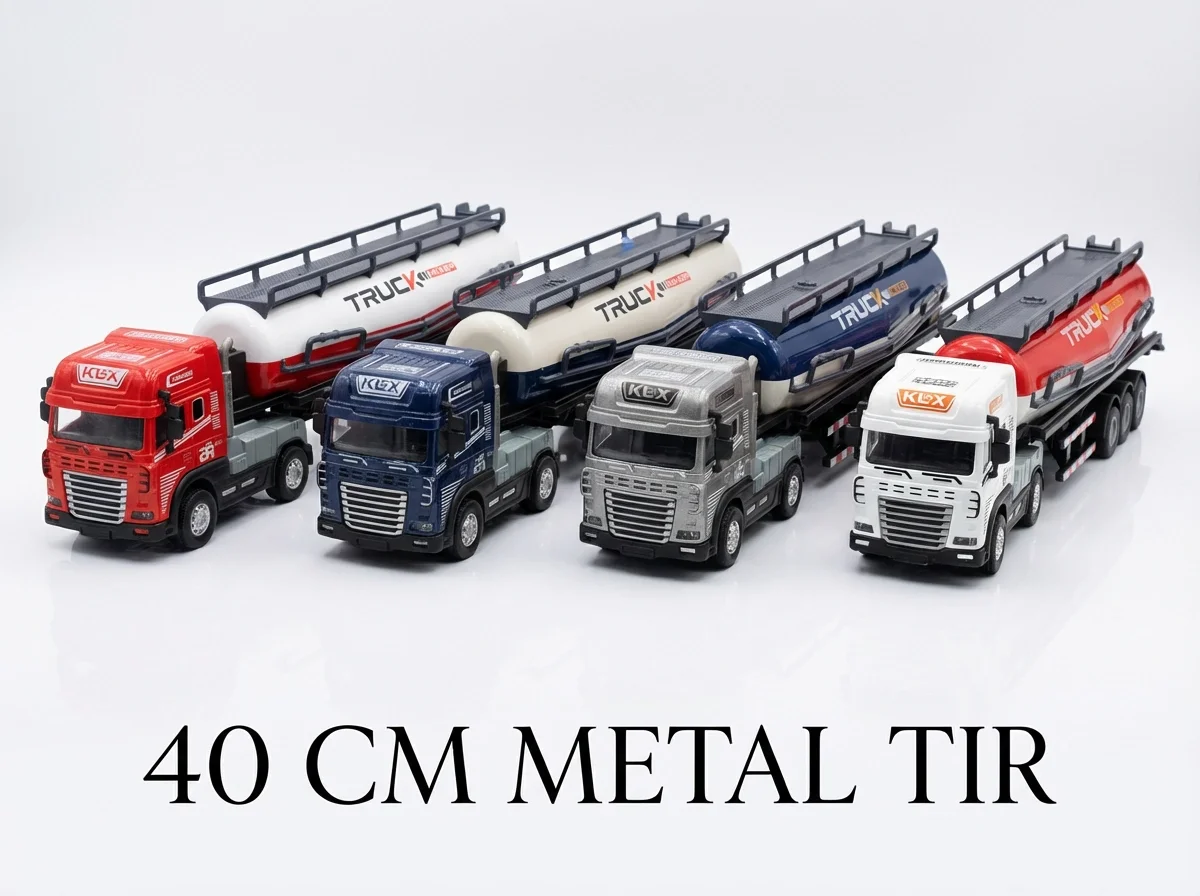 40 cm uzunluğundaki metal tanker tır, gerçek tır detaylarıyla hazırlanmış gövde yapısı, sesli ve ışıklı efektleriyle çocuklara gerçekçi bir oyun deneyimi sunar. Dayanıklı metal kabin, plastik tanker kasası ve çek-bırak mekanizması sayesinde hem evde hem de okulda keyifle oynanabilir.