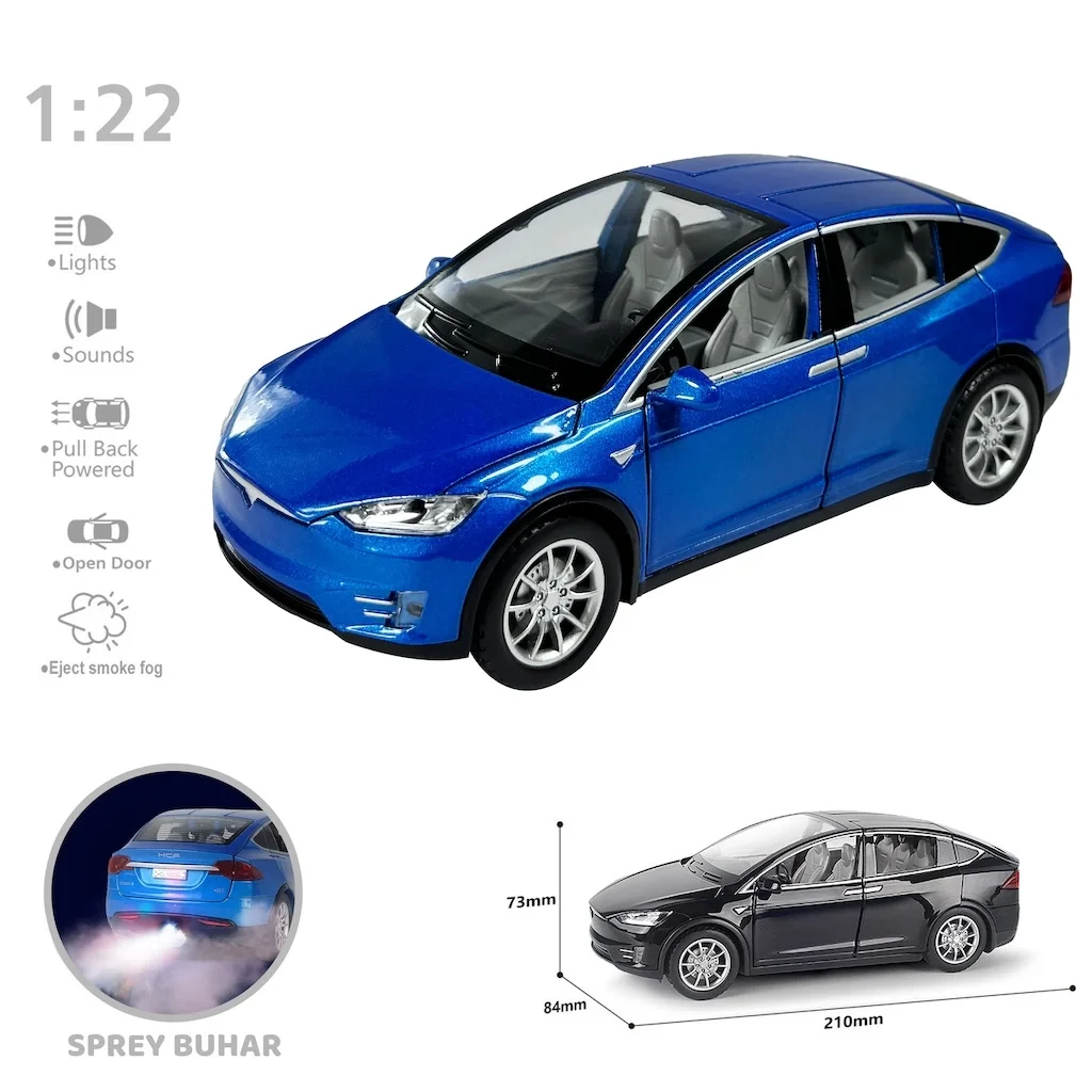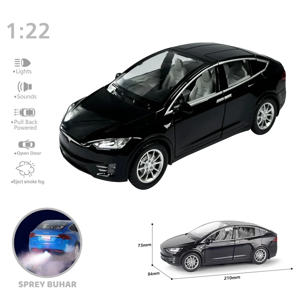 Çocukların ve koleksiyoncuların ilgisini çekecek Tesla Model X tasarımlı metal araba, çek bırak motoru, LED ışıkları, ses efektleri ve buhar püskürtme özelliği ile gerçekçi bir deneyim sunuyor!