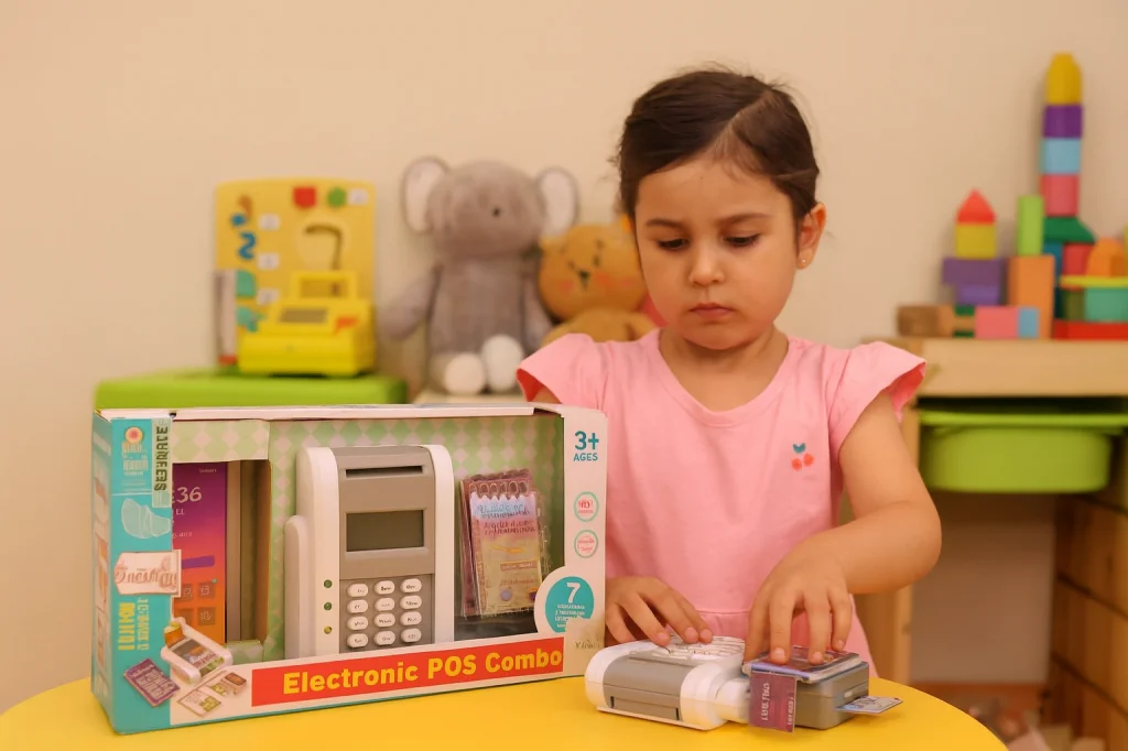 Minik kasiyerler için gerçek alışveriş deneyimi! Pilli POS Cihaz Seti, kart okuma, fiş verme hissi ve mobil POS detaylarıyla çocukların rol yapma oyunlarını zenginleştirir. Evde market, kafe veya “Sandviç Evi” konseptinde harika senaryolar kurmalarını sağlar; el–göz koordinasyonunu, sosyal iletişimi ve sayı farkındalığını destekler.