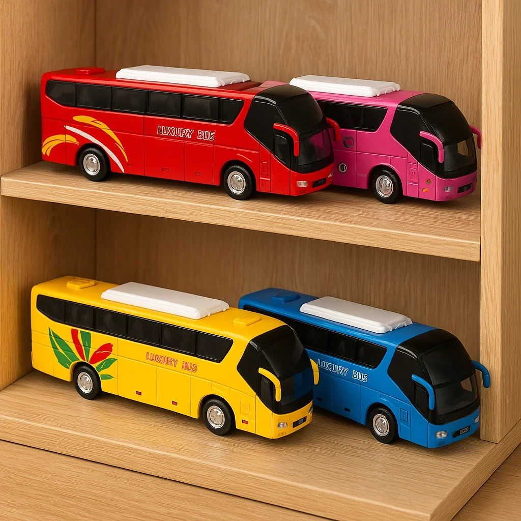• Sesli ve Işıklı Metal Yolcu Otobüsü (19 cm) – Çek bırak mekanizma, açılır kapı & bagaj, ışık ve ses efektleriyle gerçekçi oyun deneyimi.