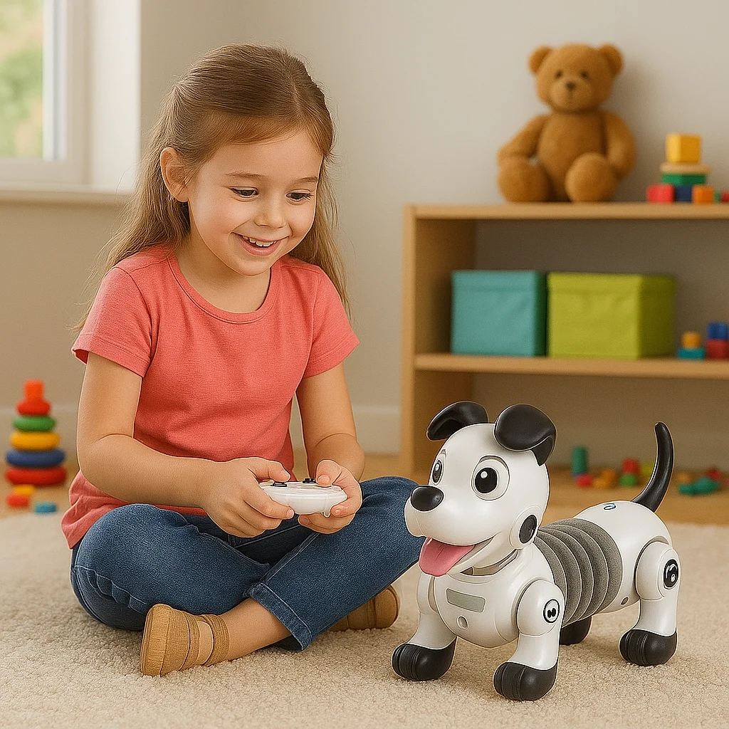 Bebeğinizle eğlenceli anlar geçirmek için mükemmel bir oyuncak! Uzaktan kumanda ile yönetilebilen bu sevimli akıllı köpek, çocukların hayal gücünü geliştirecek ve onları eğlendirecek. Esnek vücut yapısı, engellerden kaçınma yeteneği ve dokunma algılama özellikleri ile her hareketiyle çocuğunuzun ilgisini çekecek. Eğlenceli sesler ve ışıklar eşliğinde bu sevimli köpek, çocukların öğrenme sürecini desteklerken aynı zamanda harika bir arkadaş olacak.