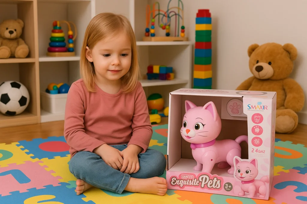 Sevimli görünümüyle dikkat çeken Uzaktan Kumandalı Kedi, ışık ve ses efektleriyle çocukların oyunlarına neşe katar. 2.4GHz teknolojisi sayesinde kesintisiz bağlantı sağlar ve kolayca kontrol edilebilir. 3 yaş ve üzeri çocuklar için güvenli, eğlenceli ve gelişimi destekleyen bir oyuncaktır.